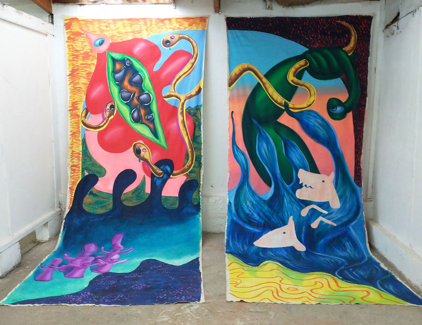and Skylla, acrylic on calico, approx. 400x320cm,